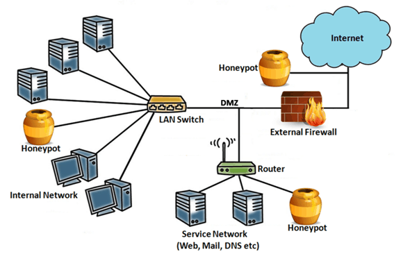 Um dem entgegenzuwirken, werden unter anderem Honeypots als Maßnahme zur Ergänzung von Firewalls eingesetzt.